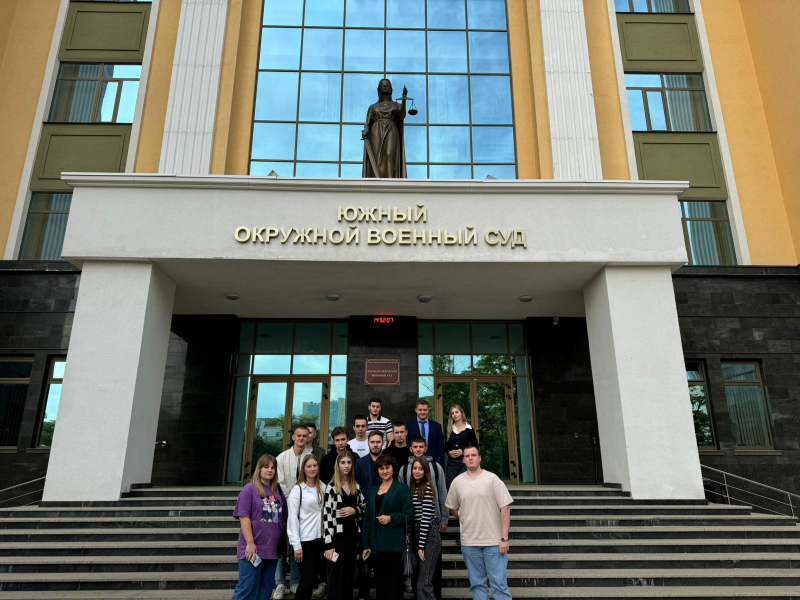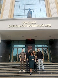 16 декабря 2022 года в рамках изучения дисциплин «Правоохранительные органы» и «Уголовное право» доцентом кафедры «Административное право и уголовно-правовые дисциплины» Е.А. Миллеровой для студентов 2 курса направления подготовки «Юриспруденция», факультета «Экономика, управление и право» ФГБОУ ВО РГУПС было организовано выездное занятие в Южный окружной военный суд.