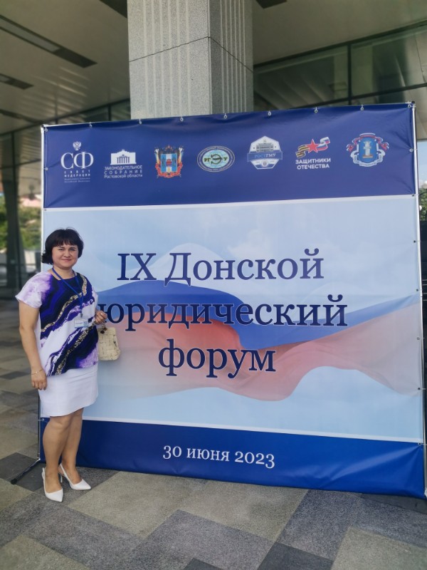 30 июня 2023 года доцент кафедры "Административное право и уголовно-правовые дисциплины" ФГБОУ ВО РГУПС к.ю.н.,доцент Миллерова Е. А. приняла участие в работе пленарного заседания IX Донского юридического форума, посвященного обсуждению вопросов социально