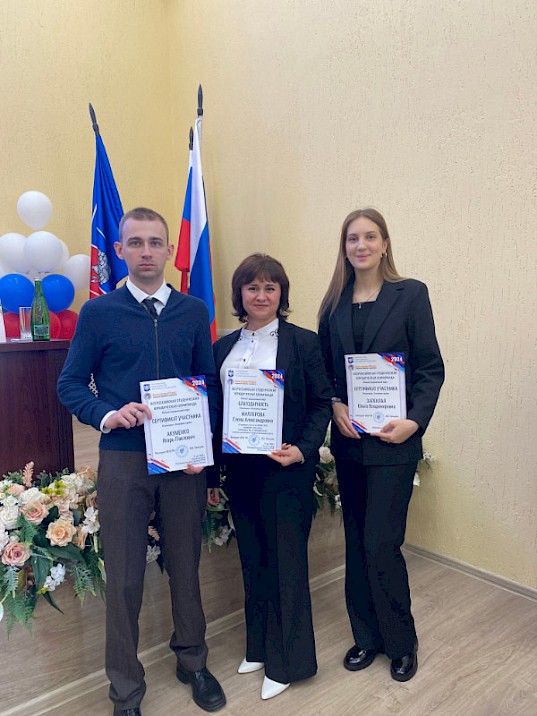 11 марта 2022 года студенты факультета «Экономика, управление и право» ФГБОУ ВО РГУПС Гализа Дарья (ПУБ-2-25), Гикаев Давид (ПУБ-2-23), Кибалка Константин (ПГБ-3-22) под руководством доцента кафедры «Административное право и уголовно-правовые дисциплины» к.ю.н. Миллеровой Е.А., совместно с доцентом кафедры «Административное право и уголовно-правовые дисциплины» к.ю.н. Затона Р.Е. приняли участие в V Межвузовской студенческой научно-практической конференции «Межотраслевые проблемы формирования правовой культуры в молодежной среде», организованной факультетом «Юридический» ФГБОУ ВО ДГТУ.