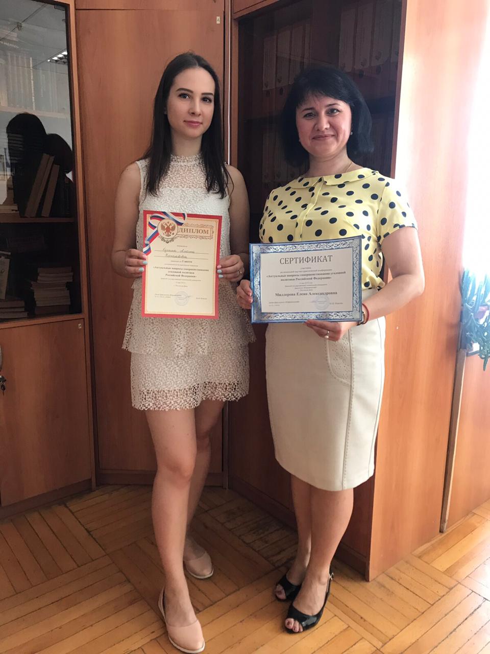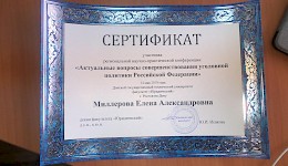 Калмыкова Д.И., Журавлёва Е.В. и Куксина А.В.подготовили под руководством к.ю.н., доцента Миллеровой Е.А. доклады по актуальным вопросам уголовного, уголовно-исполнительного и уголовно-процессуального права, с которыми успешно выступили на конференции. По результатам конференции Куксина А.В. заняла 1 место и награждена дипломом. Калмыкова Д.И., Журавлёва Е.В. получили сертификаты участника.
