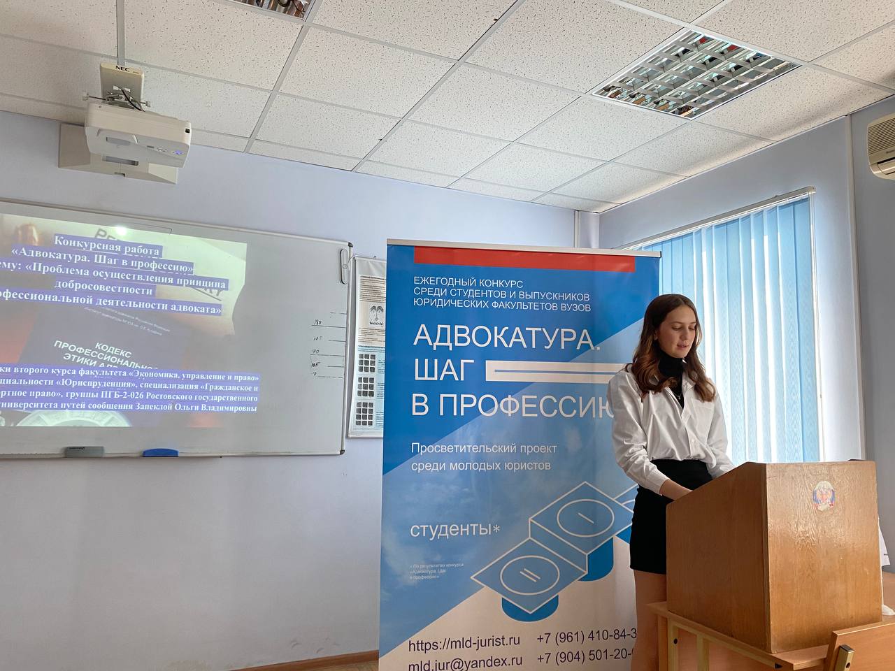 20 апреля 2023 г. на базе факультета "Экономика, управление и право" ФГБОУ ВО РГУПС был проведён II тур ежегодного Областного конкурса среди студентов юридических факультетов Ростовской области "Адвокатура. Шаг в профессию", организованном Ростовской региональной общественной организацией "Молодые юристы Ростовской области".