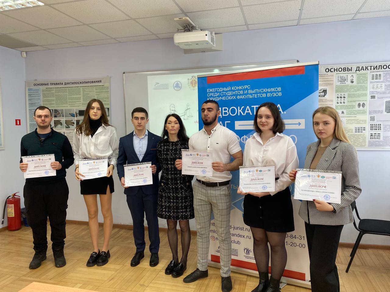 В конкурсе приняли участие студенты 2-3 курса направления подготовки "Юриспруденция " Гикаев Давид, Госян Давид, Запеклая Ольга, Марченко Роман.