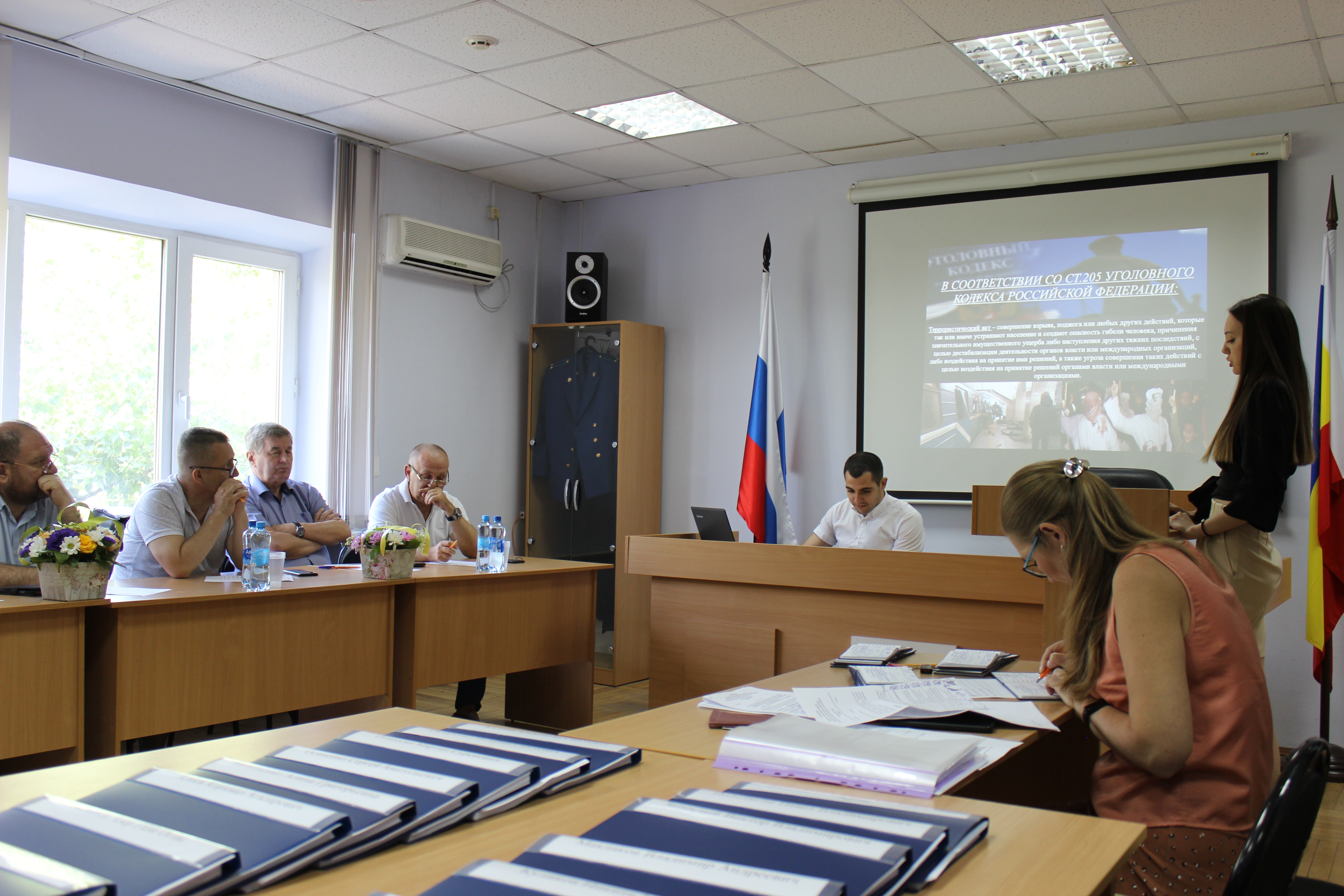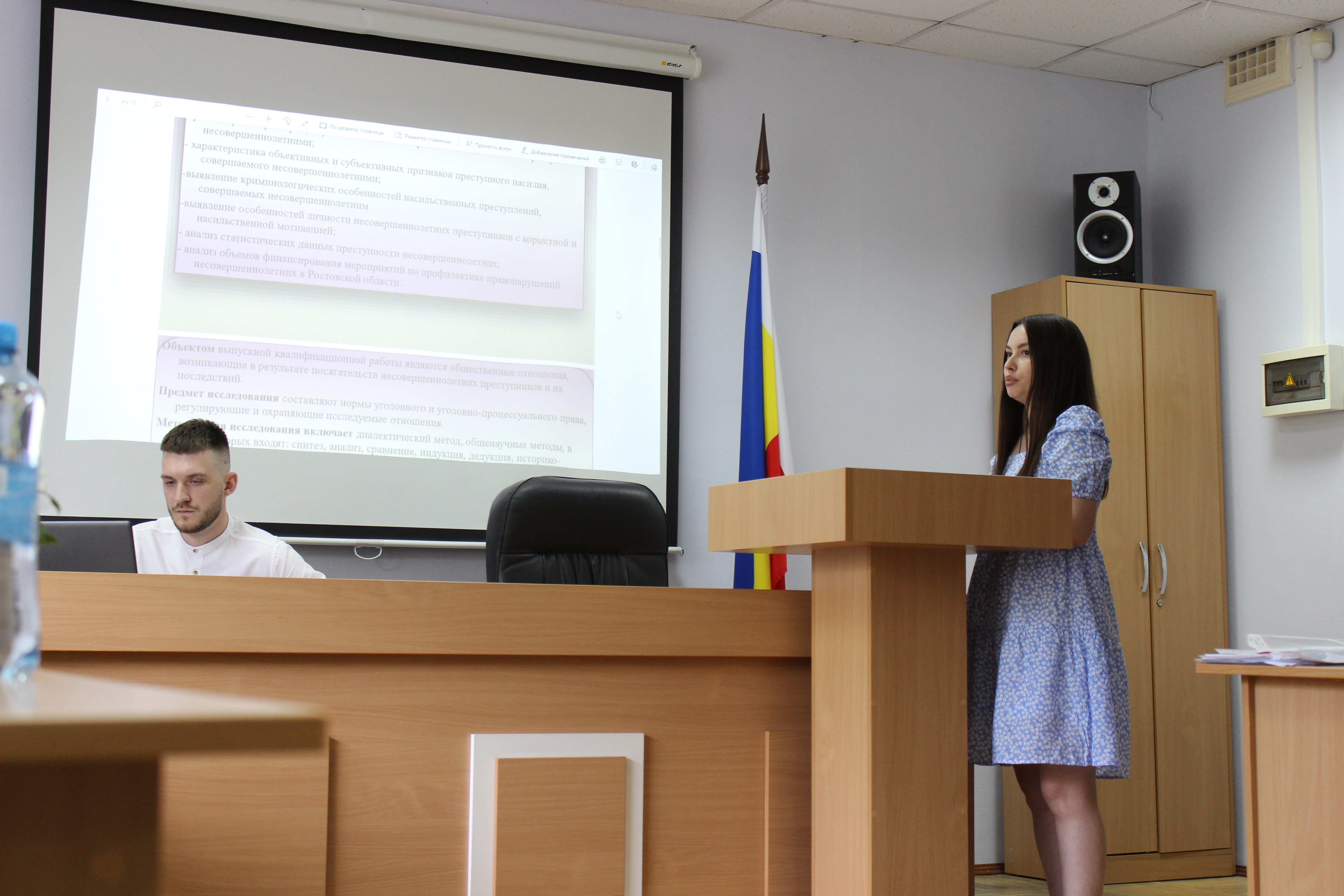 21 июня 2022 года на кафедре «Административное право и уголовно-правовые дисциплины» прошла защита выпускных квалификационных работ. Выпускные группы – ПУБ-4-018, ПУБ-4-020 защитились в полном составе. Председатель комиссии д.ю.н., профессор, декан Юридического факультета ФГБОУ ВО РГЭУ «РИНХ» А.Н. Позднышов, члены комиссии: заместитель начальника УТ МВД России по СКФО – начальник СУ УТ МВД России по СКФО А.Г. Липунов, адвокат Ростовской областной коллегии адвокатов им. Д.П. Баранова В.Г. Алексеев, эксперт ООО «Центр Экспертизы и Права» Р.Е. Затона, декан факультета ЭУП к.ю.н., доцент А.В. Фёдоров, заведующий кафедрой к.ю.н, доцент И.П. Напханенко.