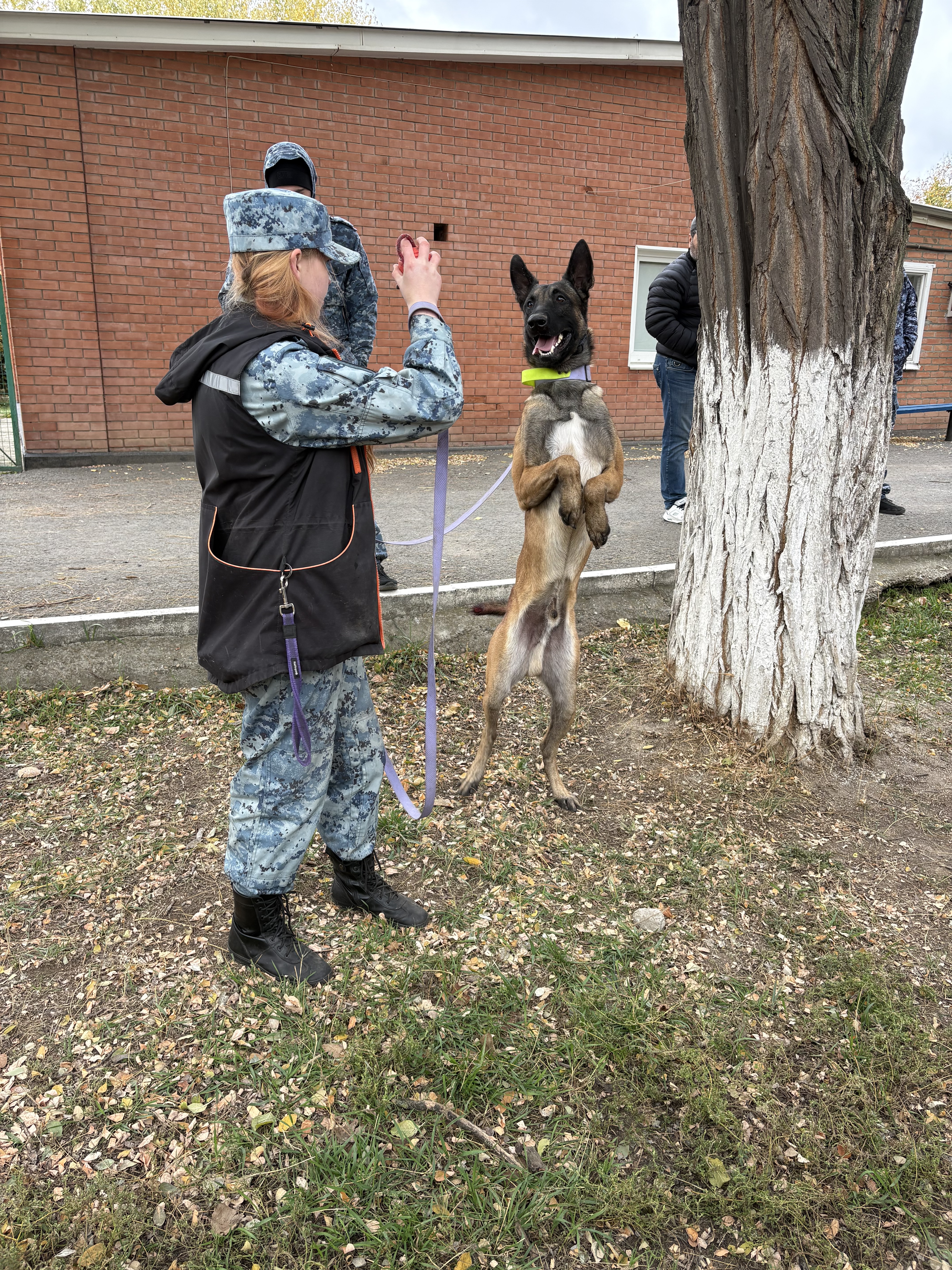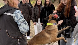 Социолог школы Лариса Волгина провела познавательную экскурсию по территории учебного заведения, а также рассказала о важной роли служебных собак в правоохранительных органах, объясняя, как четвероногие напарники помогают в поиске наркотиков, взрывчатых веществ и в поиске пропавших людей. Студенты узнали о том, как проходят тренировки собак, какие породы наиболее подходят для службы и как важно взаимодействие между кинологом и питомцем. В рамках экскурсии кинологи продемонстрировали ребятам показательное выступление – задержание собакой преступника.