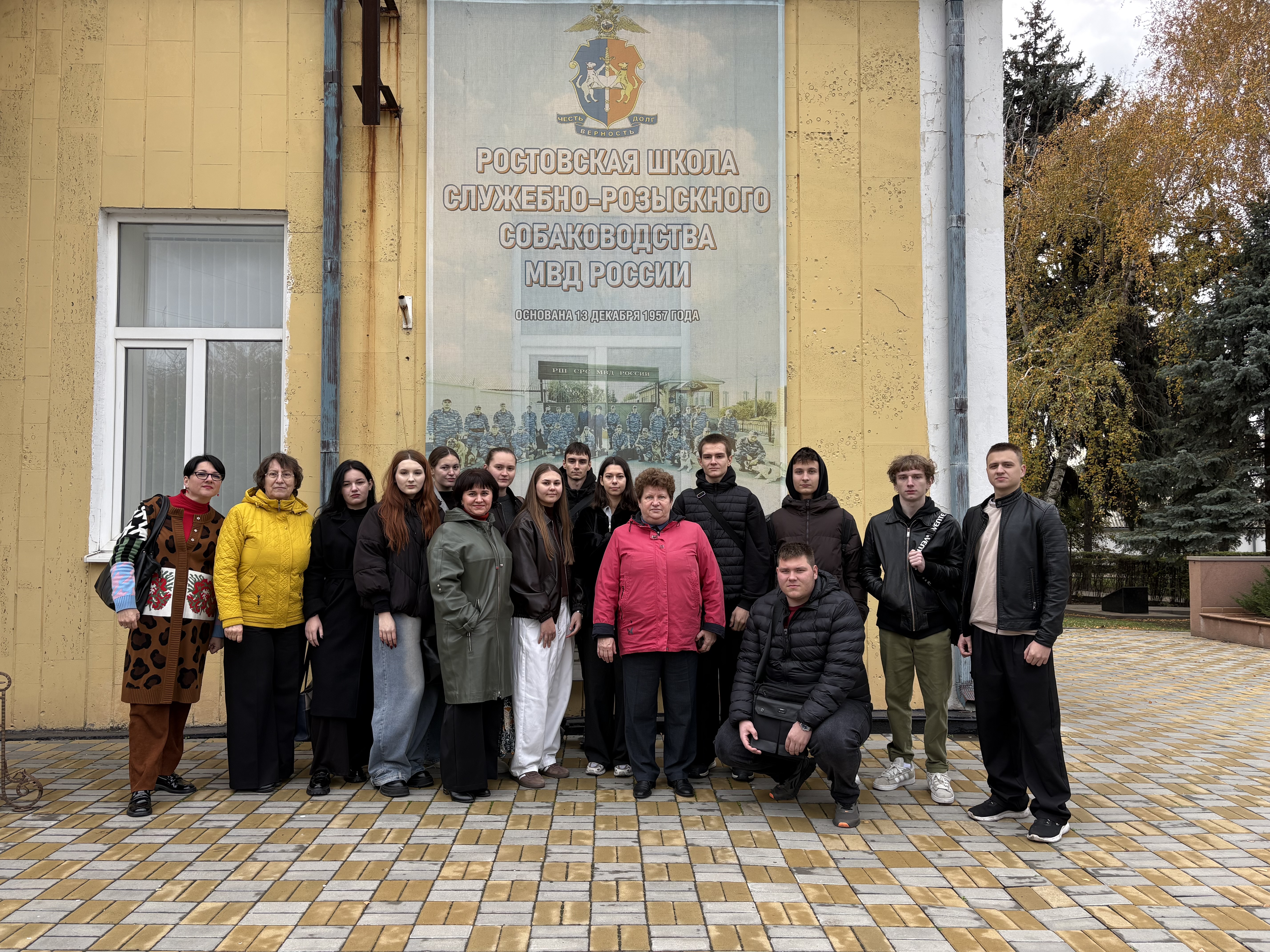 21 октября 2025 года студенты 2 курса факультета «Экономика, управление и право», направления подготовки «Юриспруденция» в рамках изучения дисциплины правоохранительные органы и в рамках кураторского часа, посетили Ростовскую школу служебно-розыскного собаководства при МВД России в сопровождении сотрудников кафедры Административное право и уголовно-правовые дисциплины О.А. Лазебной и Е.А. Миллеровой.