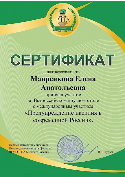 27 октября 2021 года доцент кафедры «Административное право и уголовно-правовые дисциплины», к.псих.н. Мавренкова Елена Анатольевна приняла участие в работе Всероссийского круглого стола