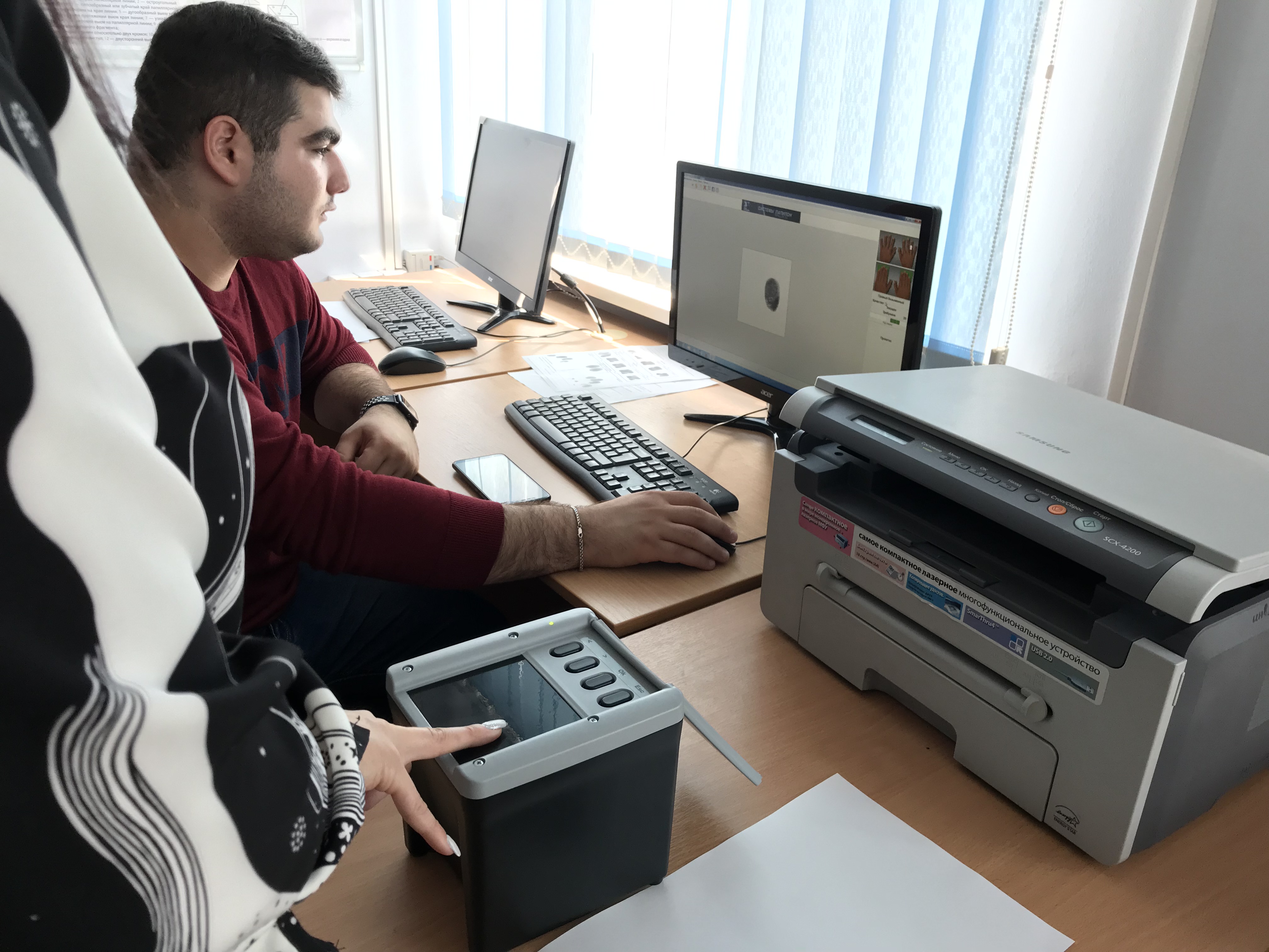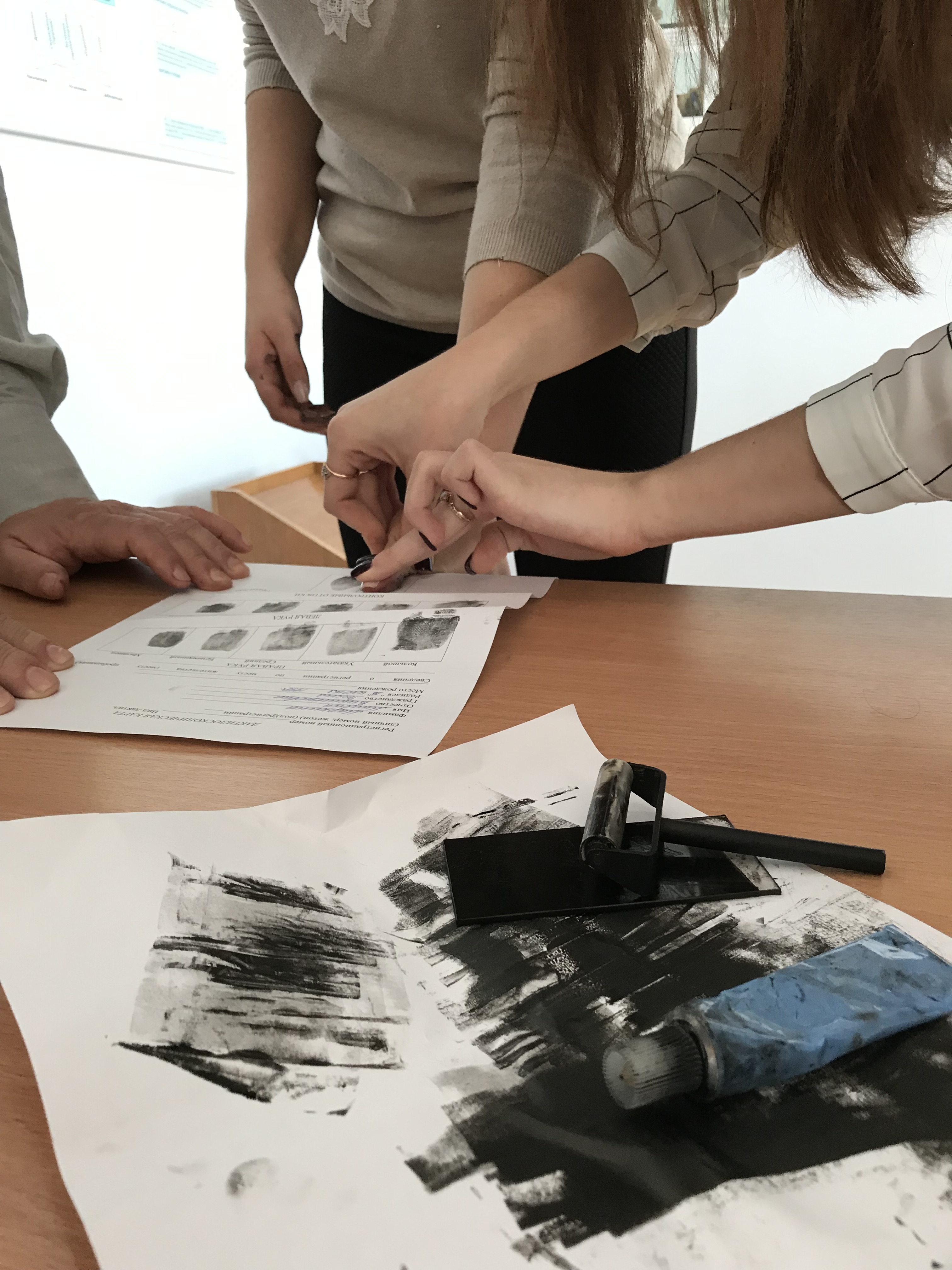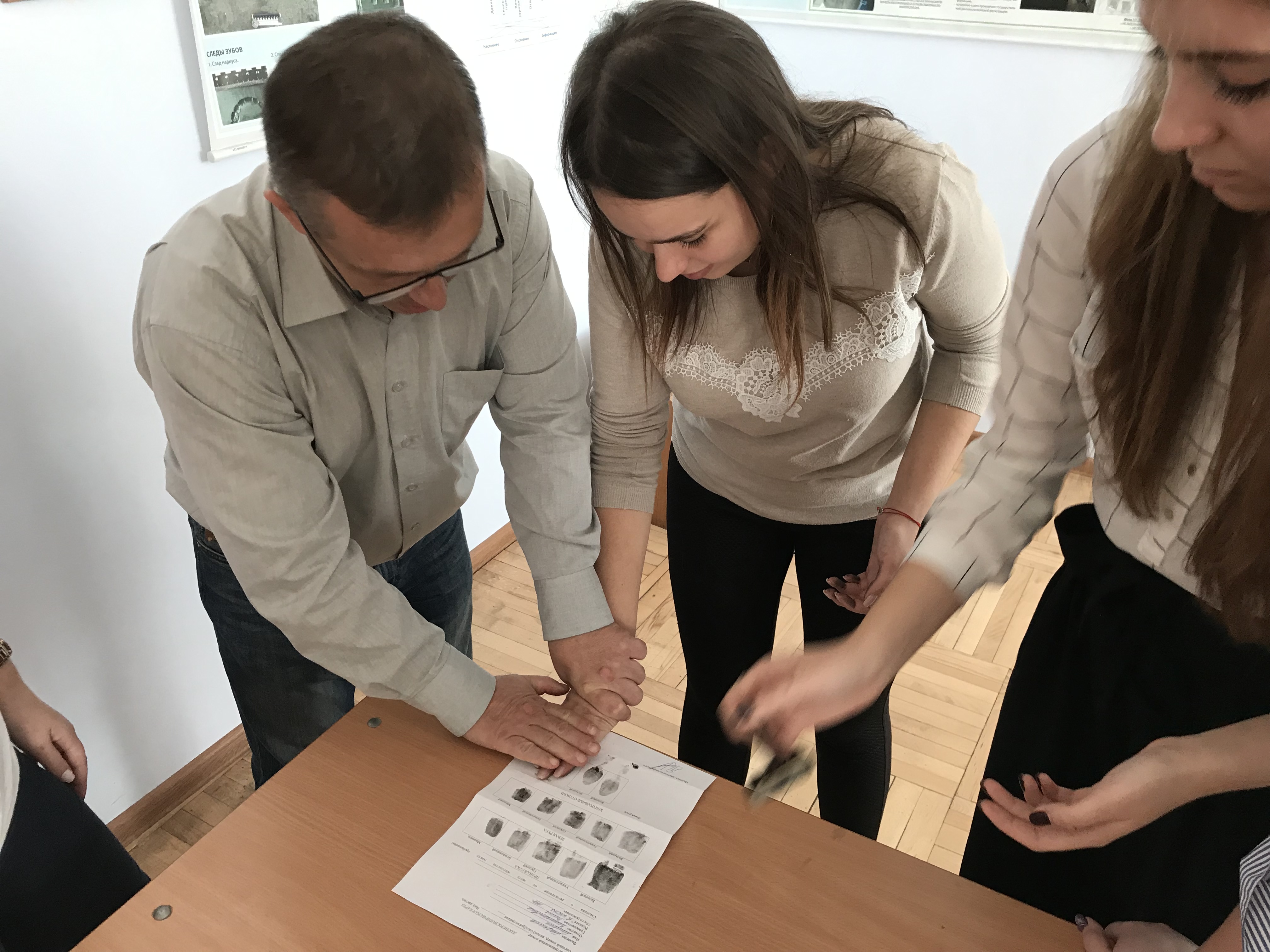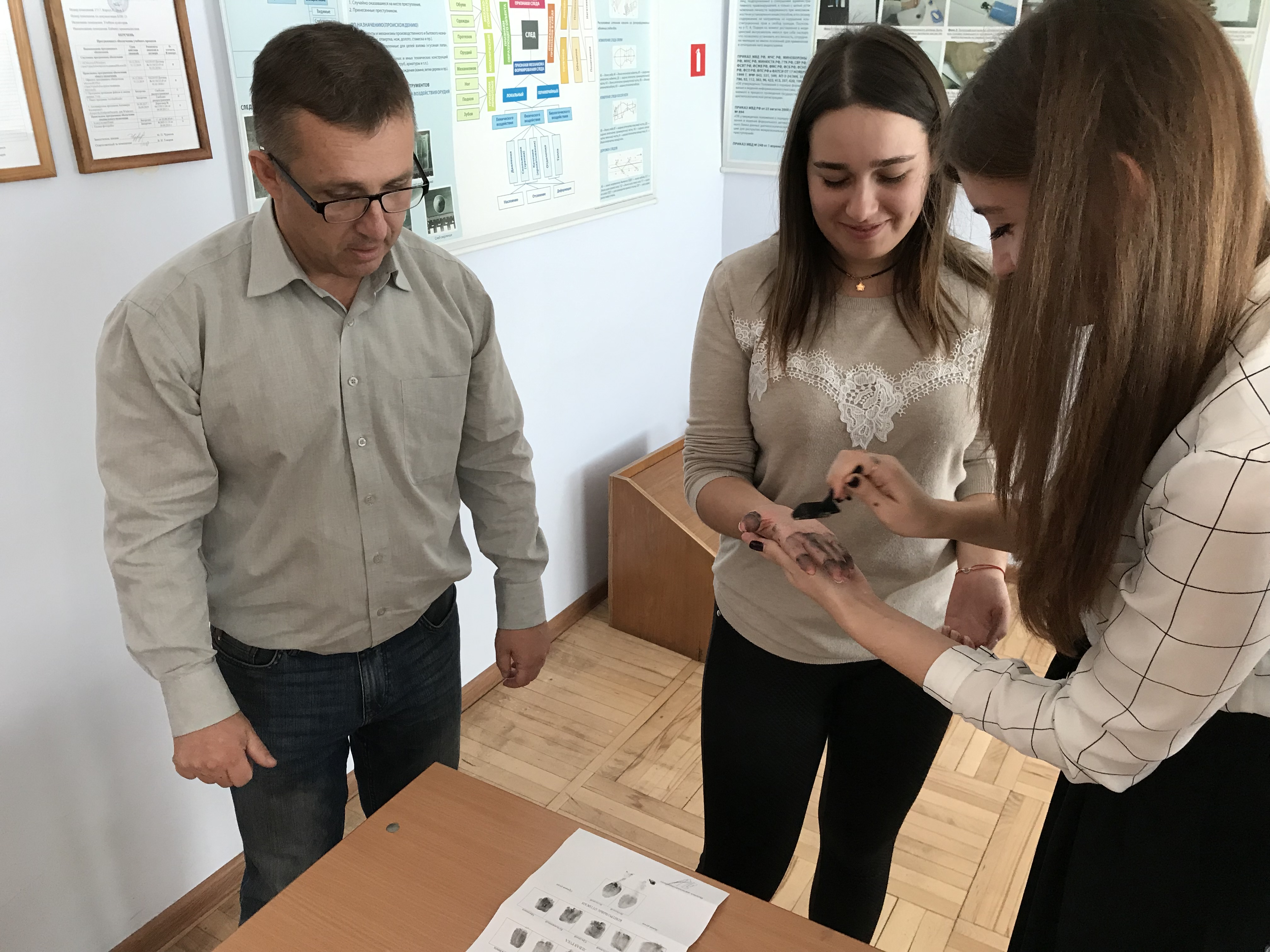Заведующий кафедрой «Административное право и уголовно-правовые дисциплины», доцент И.П. Напханенко на лабораторном занятии по дисциплине «Криминалистика» со студентами учебной группы ПБС-4-012 продемонстрировал способы получения отпечатков пальцев с помощью традиционных и компьютеризированных методов дактилоскопии.