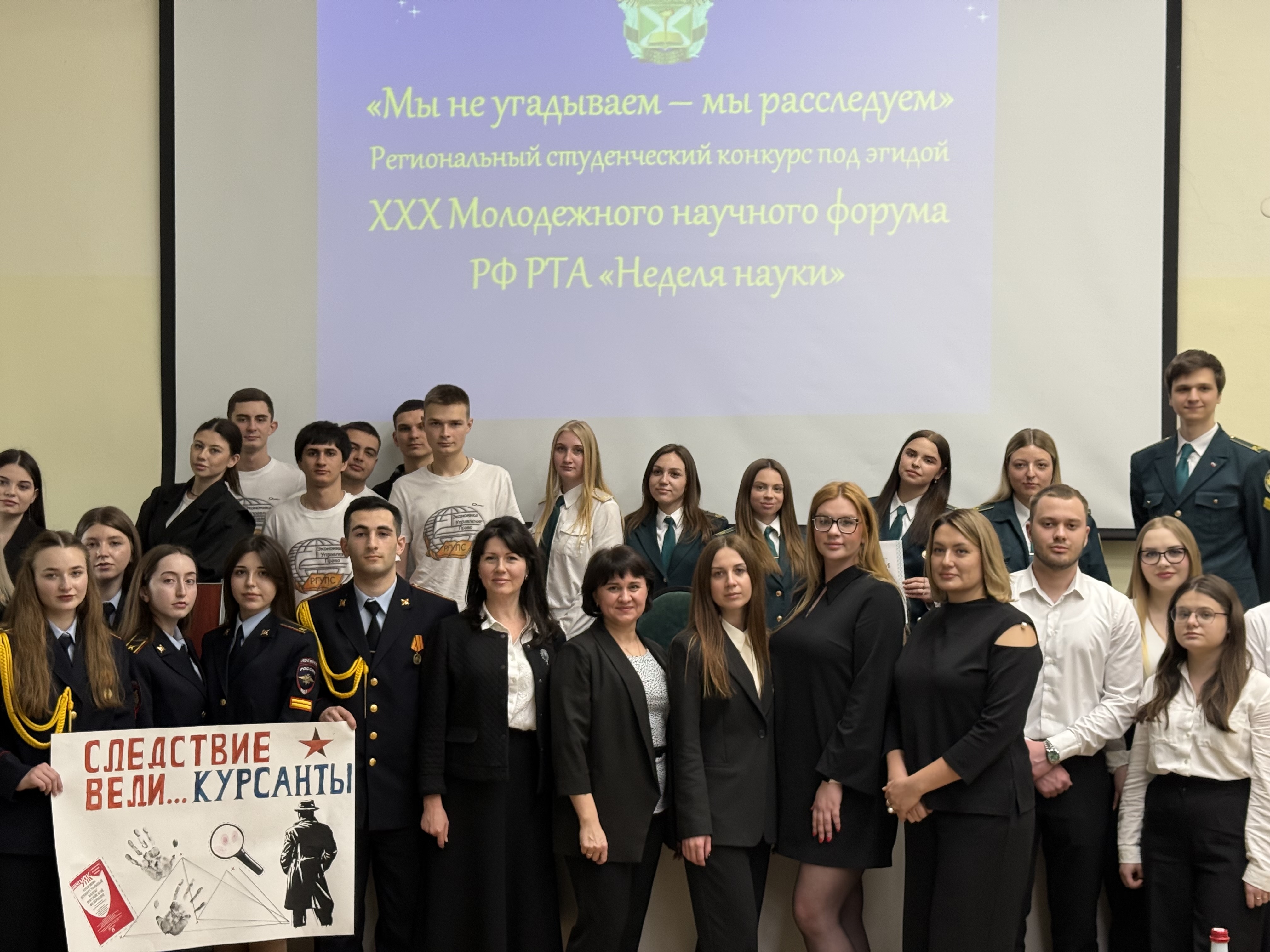 24 марта 2026 г. команда Ростовского государственного университета путей сообщения «Южный экспресс» в составе студентов 3 курса направления подготовки «Юриспруденция» - Нициевского Матвея (капитан команды), Икрянова Артема, Захарченко Ивана, Мартышенко Кирилла, Макеевой Вероники, Рамазян Рачика под научным руководством профессора кафедры «Административное право и уголовно-правовые дисциплины» к.ю.н., доцента А.В. Фёдорова, в сопровождении доцента этой же кафедры к.ю.н., доцента Е.А. Миллеровой, приняли участие в региональном студенческом командном конкурсе по уголовному процессу «Мы не угадываем-мы расследуем», проведенном в Ростовском филиале Российской таможенной академии».