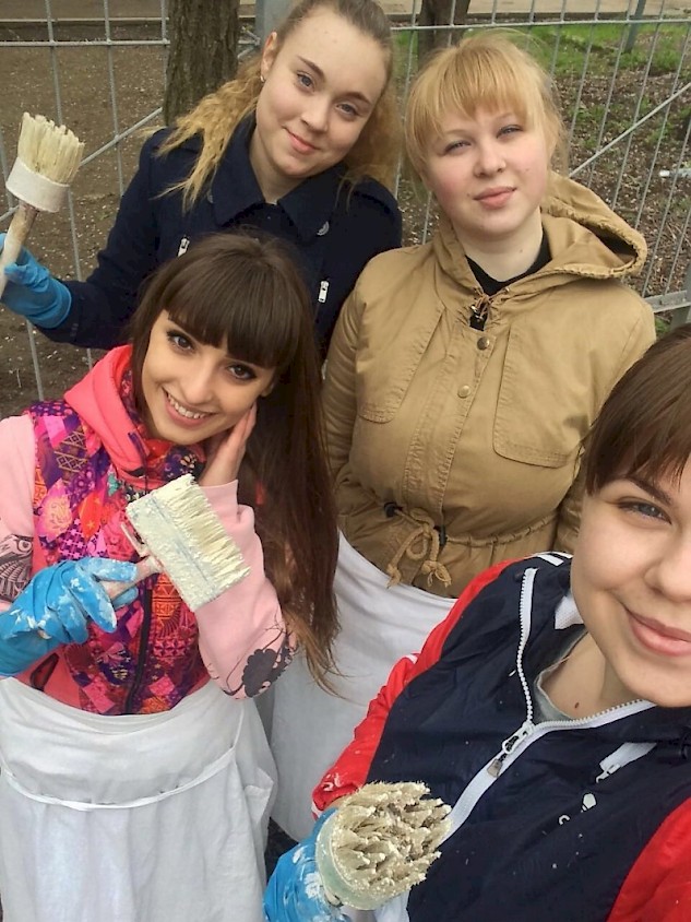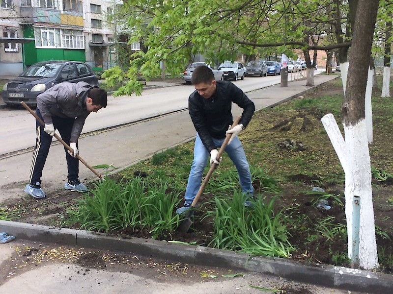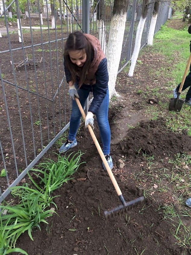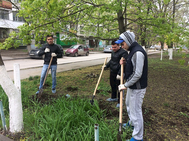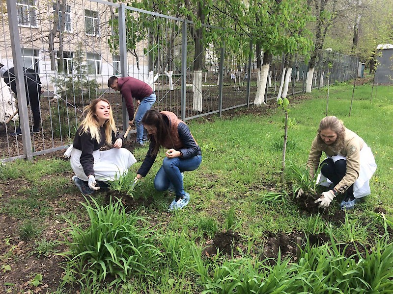 В рамках волонтерского движения и поддержки инициатив Комитета по охране окружающей среды Администрации  г. Ростова-на-Дону, студенты группы ПЮБ-2-012 помогли сотрудникам и учащимся школы-интернат для слабовидящих детей № 38 в благоустройстве территории.