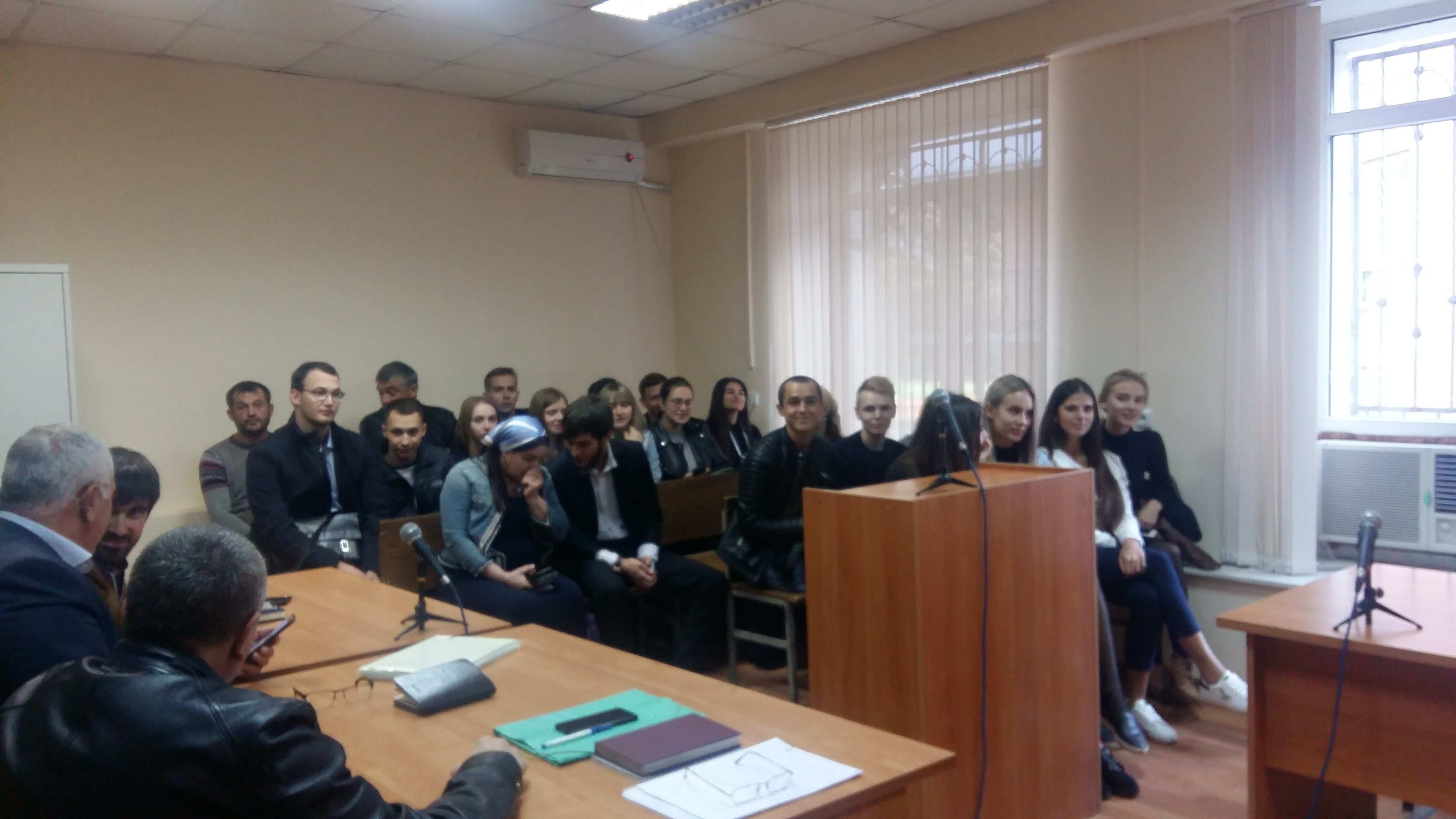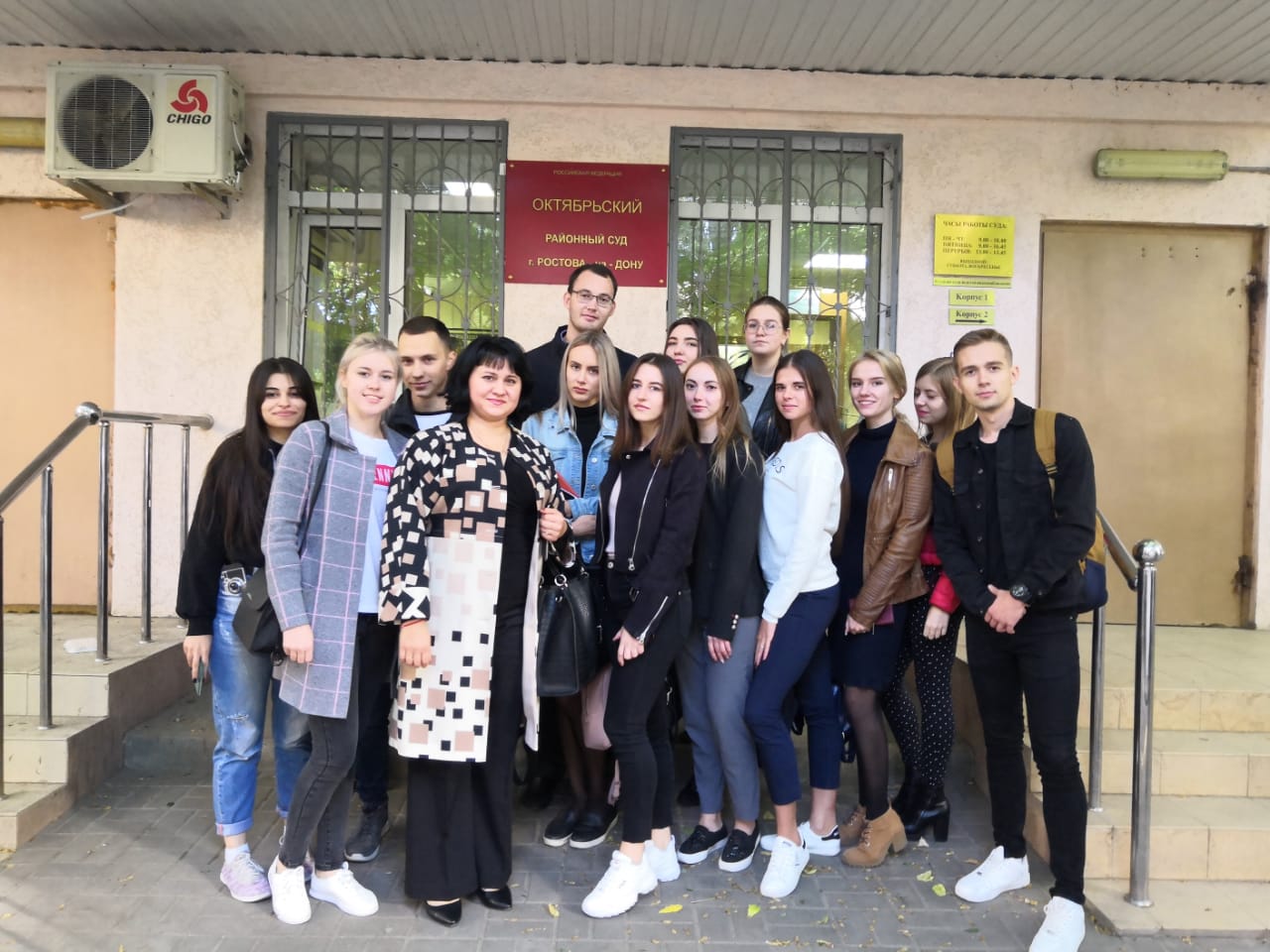 28 сентября и 12 октября 2018 г. в рамках изучения учебной дисциплины «Уголовный процесс» (тем доказательства в уголовном процессе, ходатайства и жалобы) студенты факультета «Экономика, управление и право» гр. ПГБ-3-13, ПУБ-3-14, ПБС-3-10 совместно с доцентом кафедры «Административное право и уголовно-правовые дисциплины» Миллеровой Е.А. посетили Октябрьский районный суд г. Ростов н/Д, присутствуя на проведении таких процессуальных действий как продление срока содержания под стражей и прения сторон.