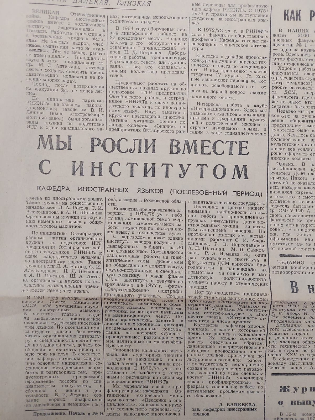 21 ноября в РГУПС прошла встреча «История в лицах», которая была посвящена кафедре «Иностранные языки».