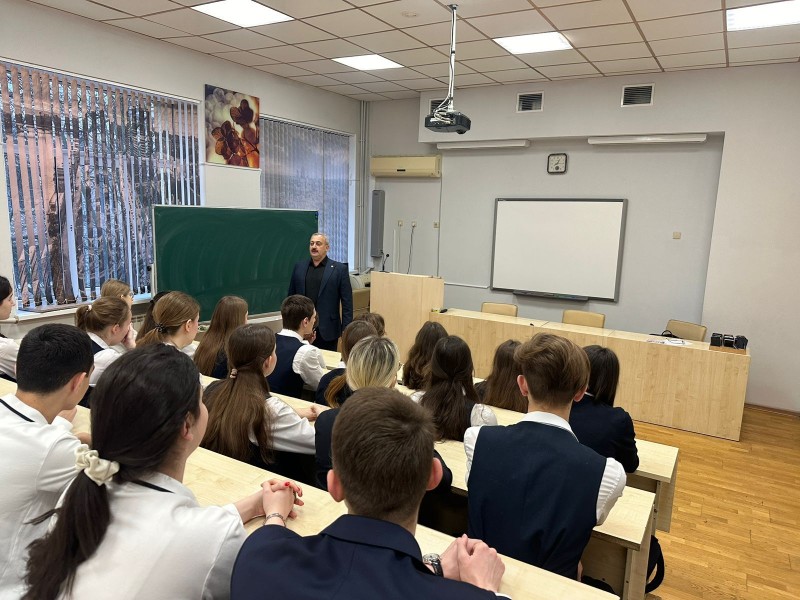 18 марта 2024г. в рамках профориентационной работы, заведующим кафедрой "Теория государства и право", профессором Смоленским Михаилом Борисовичем, было проведено лекционное занятие с учащимися Лицея №11 г.Ростова-на-Дону "О профессии юриста" и организации образовательного процесса на факультете Экономика, управление и право РГУПС.
