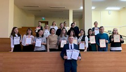 12 февраля 2024г. в рамках профориентационной работы, заведующим кафедрой "Теория государства и право", профессором Смоленским Михаилом Борисовичем, было проведено лекционное занятие с учащимися Лицея №11 г.Ростова-на-Дону "О профессии юриста" и организации образовательного процесса на факультете Экономика, управление и право РГУПС.