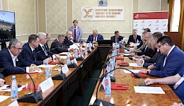 В первой части заседания были рассмотрены и обсуждены актуальные вопросы взаимодействия между организациями, перспективы развития подведомственных университетских комплексов и отраслевых учреждений образования, а также ключевые аспекты социально-экономической защищенности работников этой сферы.