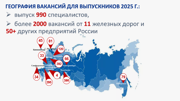 В 2025 году на заседаниях комиссий по распределению выпускников присутствовало 170 представителей из 118 компаний – работодателей, в том числе 11 полигонов железных дорог: