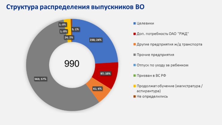 • 5 железных дорог – Северо-Кавказская (г. Ростов-на-Дону), Приволжская (г. Саратов), Юго-Восточная (г. Воронеж), Южно-Уральская (г. Челябинск), Крымская (г. Симферополь) – непосредственно приняли участие в работе комиссий по распределению и прислали свои заявки на молодых специалистов;