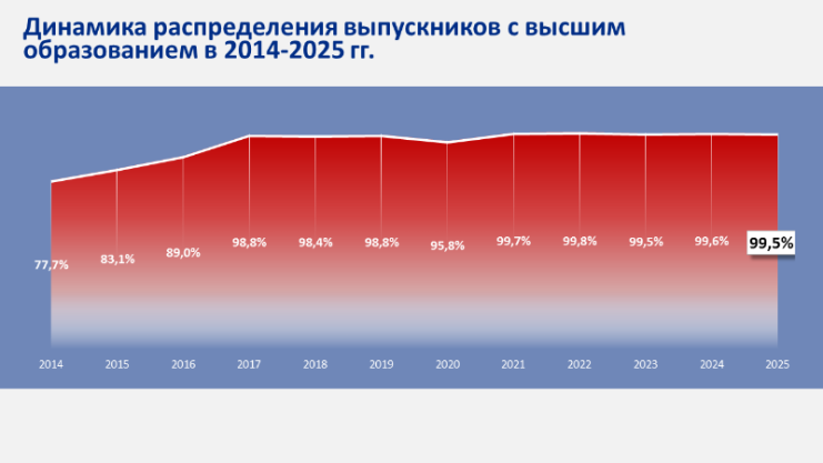 Так за последние 5 лет мы вышли на плато и ниже 99,5% уровень распределения выпускников не падает (рисунки 3).